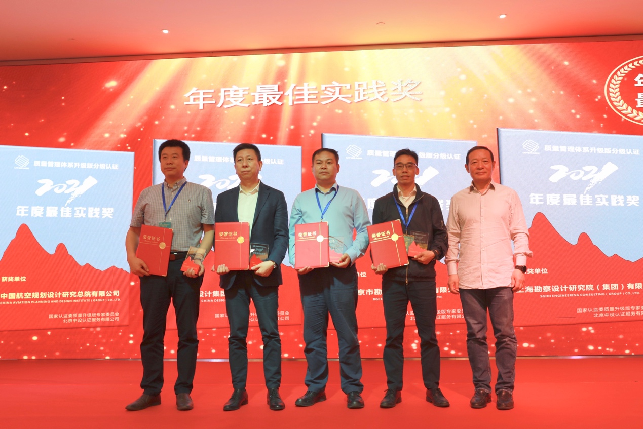 獲得勘察設(shè)計(jì)企業(yè)質(zhì)量管理管理體系升級版年度創(chuàng)新引領(lǐng)年度最佳實(shí)踐獎的單位有中國航空規(guī)劃設(shè)計(jì)研究總院有限公司、華設(shè)設(shè)計(jì)集團(tuán)股份有限公司、北京市勘察設(shè)計(jì)研究院有限公司和上海勘察設(shè)計(jì)研究院(集團(tuán))有限公司。由中國勘察設(shè)計(jì)協(xié)會理事長施設(shè)頒獎。